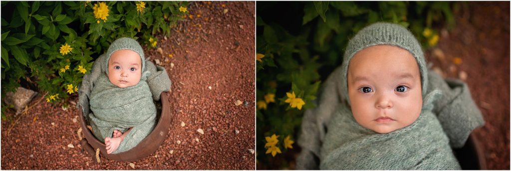 Of course, life happens and a pandemic overshadowed their newborn session. I wasn’t able to photograph him as a newborn, but we managed to shift their first session to an older baby session and mix it as a regular family session. I tried to tire him out but naturally he didn’t sleep since he was a few months old. However he was still pretty happy to be wrapped up like a little newborn. It totally worked for me! He also was big enough to fit into a few of the baby outfits the studio has, so I was happy to bring some along that mom picked out from my stash.